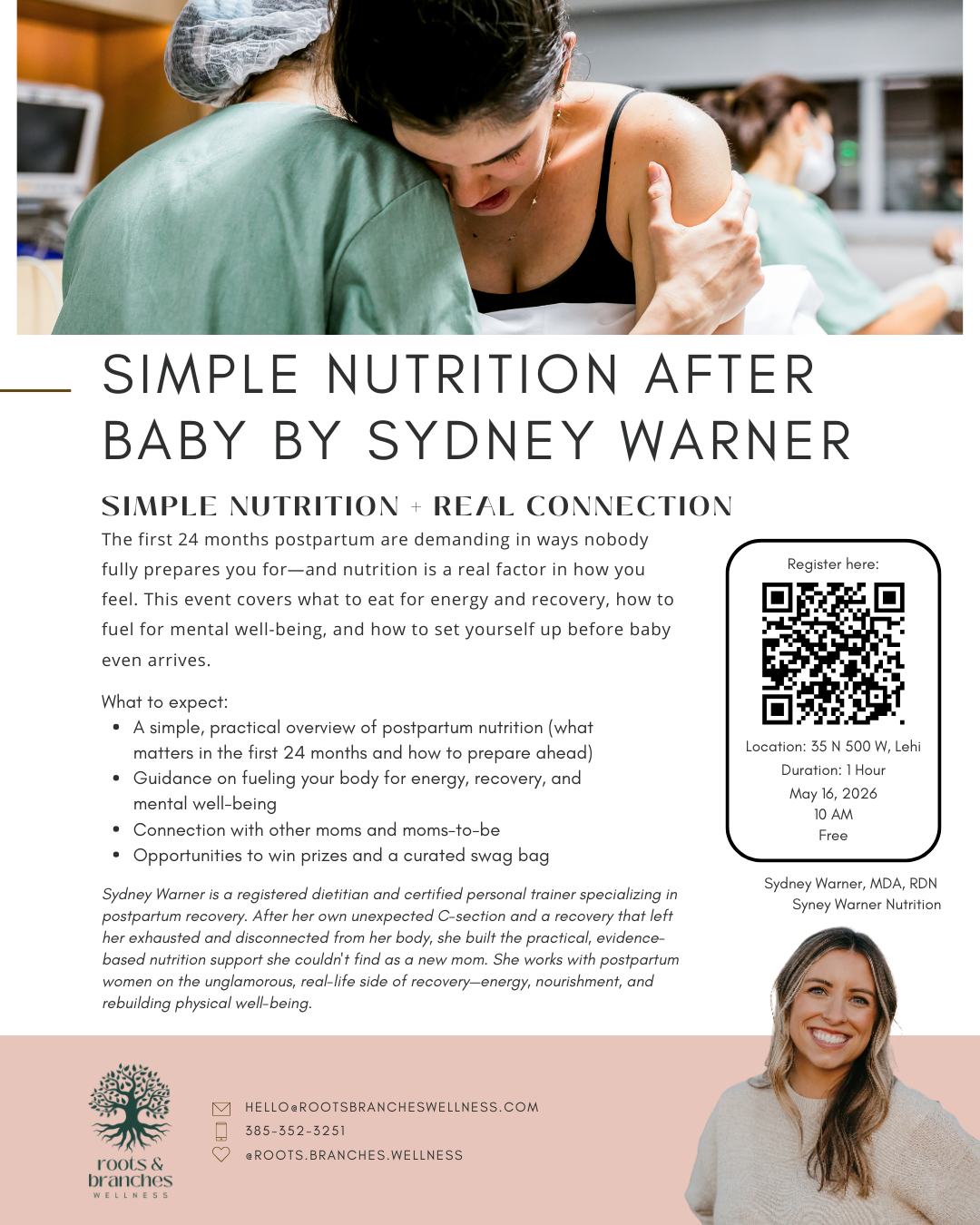 This is a free opportunity to learn more about pregnancy and postpartum nutrition. To register, visit: https://www.sydneywarnernutrition.com/group-events